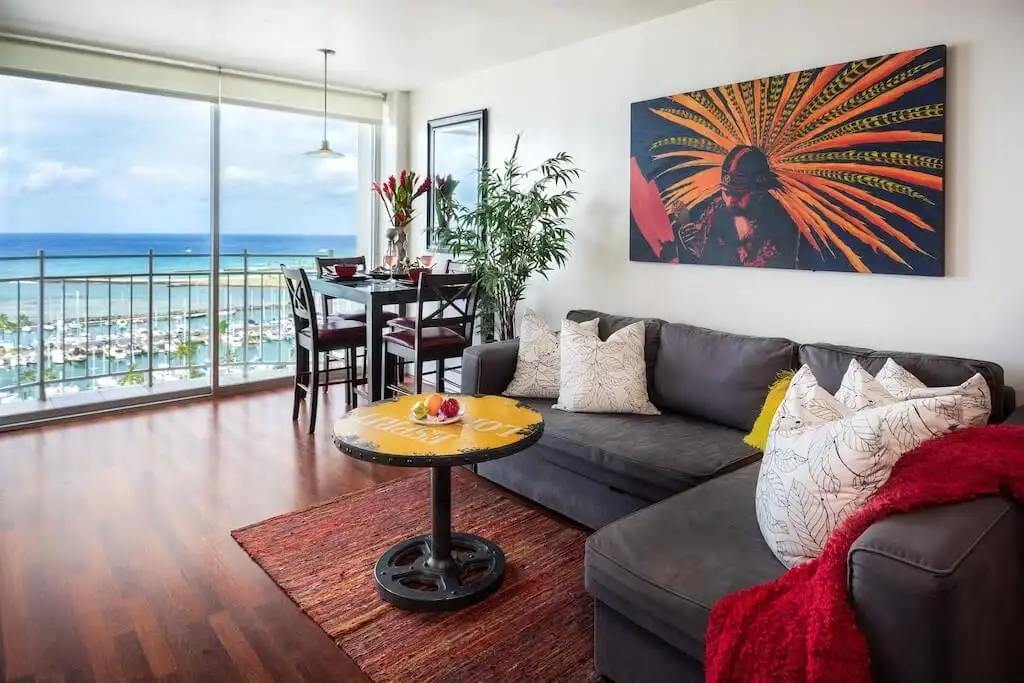 Rempli de caractéristiques accrocheuses et offrant une vue incroyable sur le port et l'océan, ce penthouse à Waikiki Honolulu est un excellent choix pour découvrir la vie nocturne animée de la ville.
