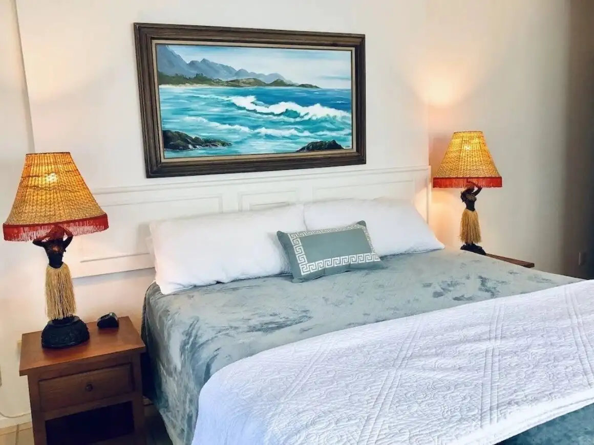 Ce condo chaleureux et accueillant est notre VRBO hawaïen préféré sur l'île de Molokai. L'appartement spacieux dispose d'une grande chambre pour deux personnes et d'un canapé-lit dans le salon confortable.