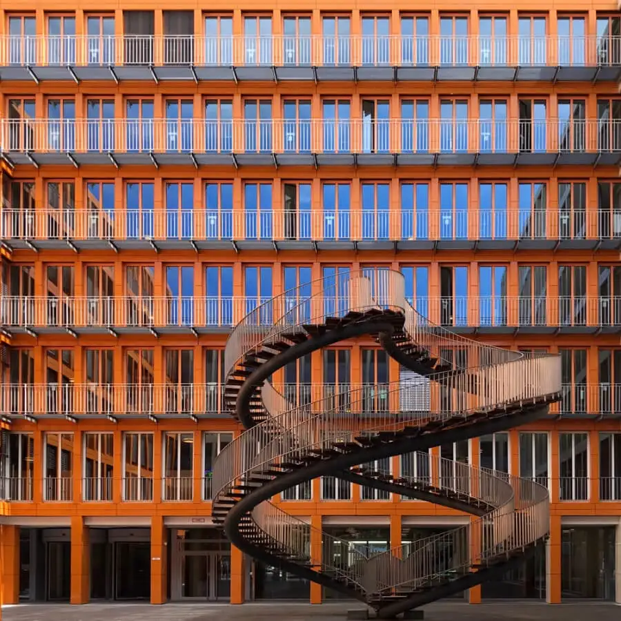 Envie de découvrir l'une des choses les plus insolites à faire à Munich ? Ensuite, vous aurez envie de visiter une cour très ordinaire devant un immeuble de bureaux très ordinaire. C'est ici que vous trouverez l'escalier sans fin, ou Umschreibung, une sculpture d'Olafur Eliasson.