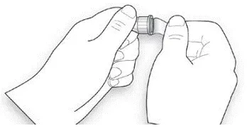 6b. Adhérer et presser la partie la plus large du capuchon d'aiguille extérieur. Tournez votre stylo plusieurs fois avec votre autre main pour retirer l'aiguille.