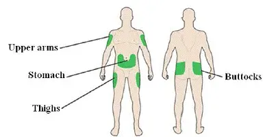 - Injectez votre insuline sous la peau (par voie sous-cutanée) de vos jambes supérieures (cuisses) Les fesses du haut des bras ou de l'abdomen (abdomen).