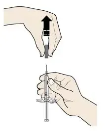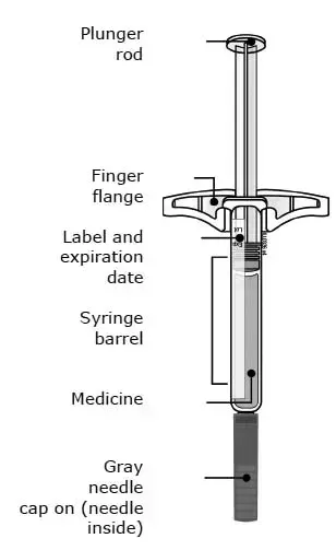 Important: Retirez le capuchon d'orange uniquement lorsque vous pouvez injecter immédiatement (dans les 5 minutes) car le médicament peut sécher. Ne pas résumer