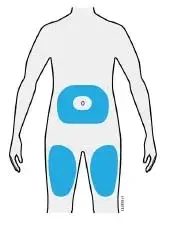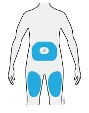- Injectez à l'avant de votre cuisse ou de votre estomac (à l'exception de 2 pouces autour de votre nombril).
