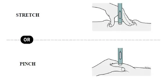 - Garder la peau étiré ou pincé jusqu'à ce que l'injection soit terminée.