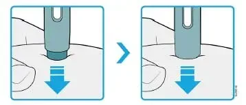 4D Continuez à appuyer sur l'auto-injecteur vers le bas et appuyez sur le bouton Démarrer gris pour démarrer l'injection.