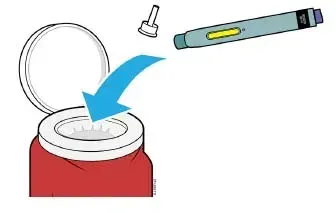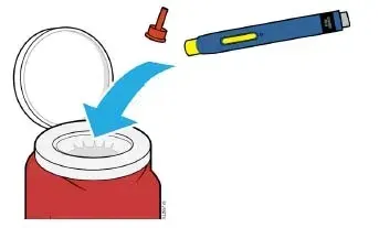 5A Placez immédiatement l'auto-injecteur et le capuchon orange utilisés dans un conteneur d'élimination des objets tranchants approuvé par la FDA après utilisation.