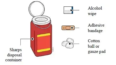 - S'il y a une presse sanguine, une boule de coton ou un coussin de gaze sur votre site d'injection. Appliquez un bandage adhésif si nécessaire.
