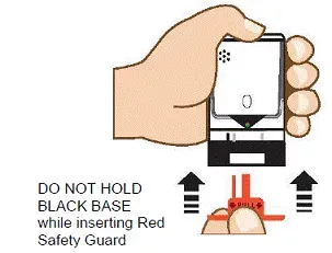 Note: Le gardien de sécurité rouge est conçu pour s'adapter. Tirez fermement pour retirer.