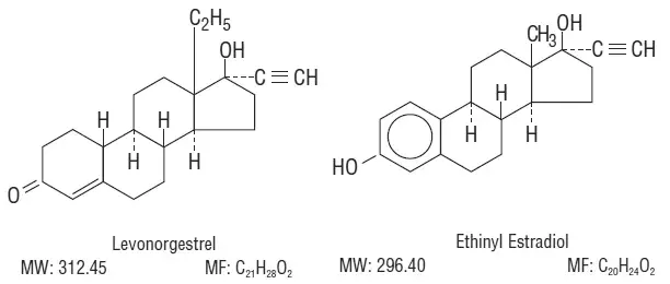 21 comprimés actifs orange contenant chacun 0,10 mg de lévonorgestrel d (-) - 13β-éthyl-17α-éthinyl-17β-hydroxygon-4-en-3-one un progestatif totalement synthétique et 0,02 mg d'estradiol 17α-éthinyl-135 (10)-estranene-317β-diol. Les ingrédients inactifs présents sont: FD