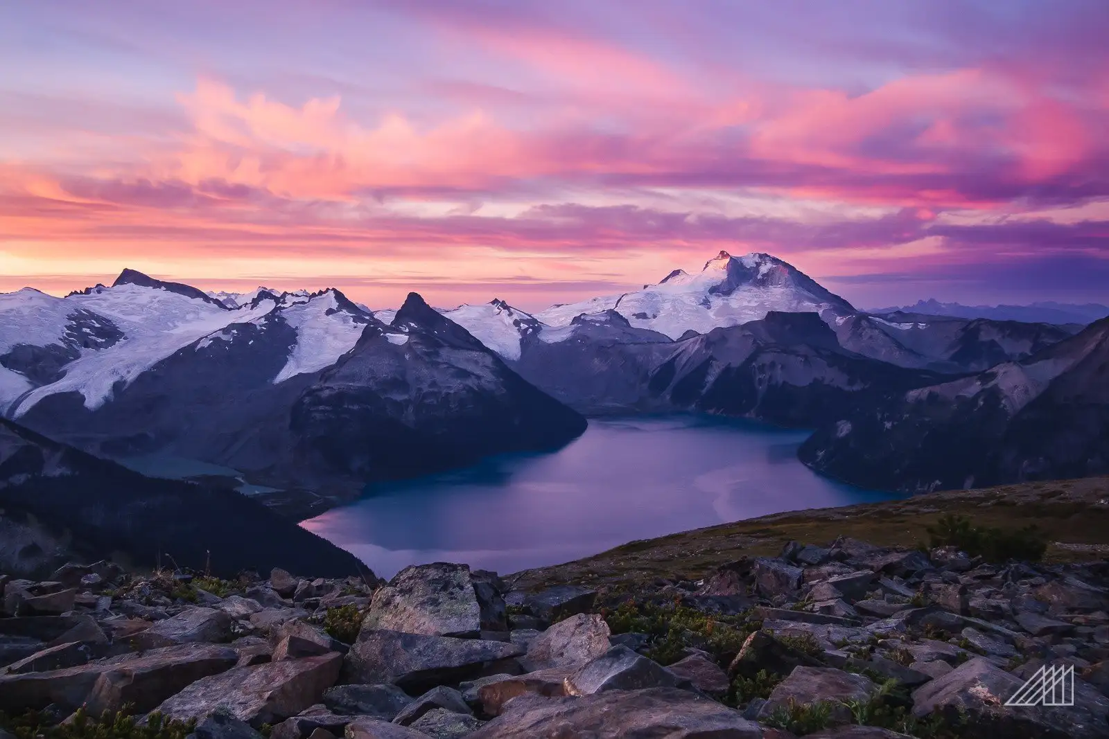 Lever de soleil sur le lac Garibaldi vu depuis Panorama Point.