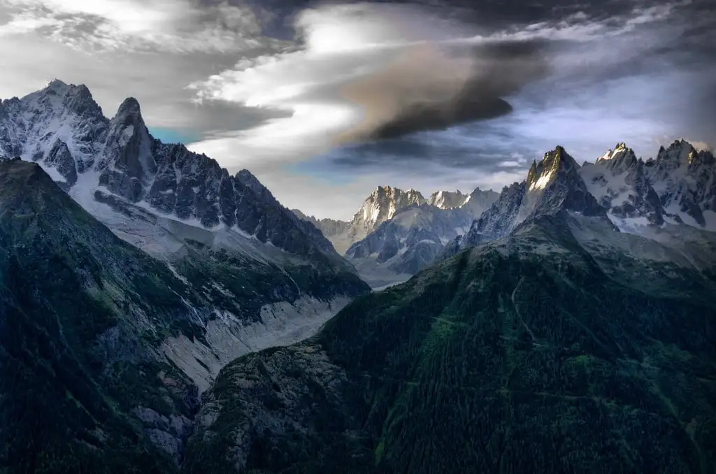 5. Walkers Haute Route (Chamonix à Zermatt) — Une grande route célèbre de Chamonix à Zermatt. Le trek présente des paysages alpins absolument classiques, des sommets enneigés, des glaciers, de hautes prairies et des vallées profondes, ainsi que des vues rapprochées d'icônes telles que le Mont Blanc et le Cervin.