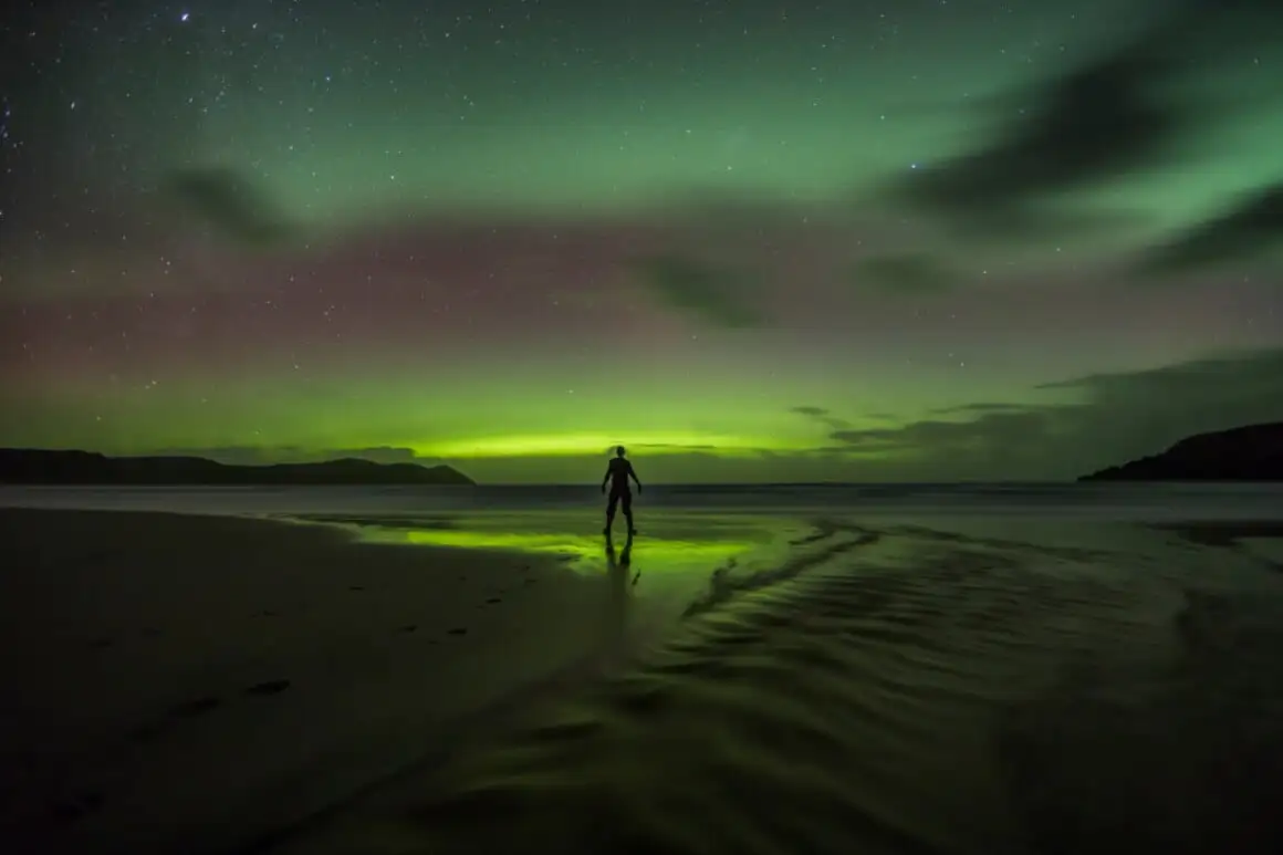 Quant à savoir où aller en Tasmanie pour voir les aurores australes ? Eh bien, j'ai toujours imaginé que l'aventure ultime serait de conduire jusqu'à Cockle Creek, puis de faire de la randonnée et du camping sur la plage à Baie du Cap Sud à Rocher du Lion . Mais en réalité, vous avez des options partout à Tassie !