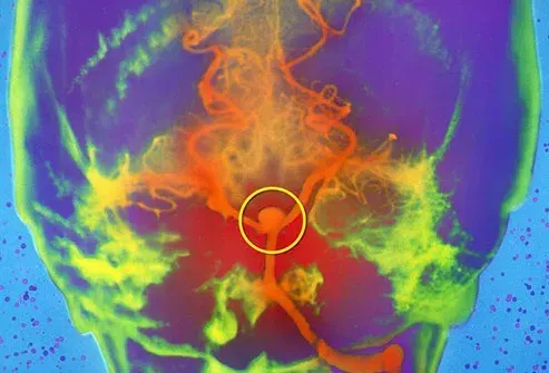 Un anévrisme cérébral est un point faible dans un vaisseau sanguin. Il y a généralement des ballons ou des renflements et se remplit de sang. Beaucoup ressemblent à une baie suspendue sur une tige mince. Ils se forment souvent sur les artères à la base du cerveau. Certains anévrismes fuient ou se ruptent. Cela provoque des saignements dans le cerveau ou dans la zone entre votre cerveau et sa doublure. Ce sont des traits hémorragiques. Ils peuvent commencer comme des maux de tête mais peuvent entraîner des crises de nausées et la mort.