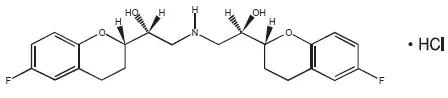 Le nom chimique de l'ingrédient actif dans les comprimés bystoliques (nébivolol) est (1RS1'RS) -11 '- [(2RS2'SR) bis (6-fluoro-34-dihydro-2h-1-benzopyran-2-yl)] - 22'-iminodiéthanol. Le nébivolol est un racémate composé de D-nébivolol et de L-nébivolol avec les désignations stéréochimiques de [SRRR] -nebivolol et [RSSS] nébivolol respectivement. La formule moléculaire du nébivolol est (c 22 H 25 F 2 NON 4 • HCl) avec la formule structurelle suivante: