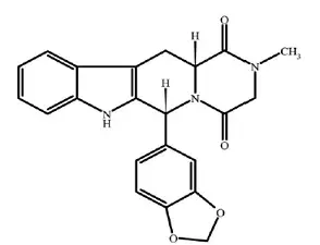 La désignation chimique est pyrazino [1 '; 2' ;: 16] pyrido [34-b] indole-14-dione 6- (13-benzodioxol-5-yl) 23671212a-hexahydro-2-méthyl- (6r12ar) -. C'est un solide cristallin qui est pratiquement insoluble dans l'eau et très légèrement soluble dans l'éthanol.