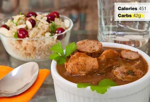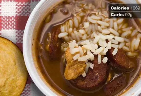 Les Gumbos que vous faites à la maison sont plus susceptibles de s'intégrer dans votre plan de repas. Utilisez une saucisse réduite en gras des saveurs cajuns authentiques du riz brun et de nombreux légumes à haute teneur en fibres. Ajouter un mélange de salade à grains entiers avec des fruits séchés aux noix et des légumes hachés.