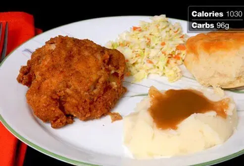 Évitez le combo de purée de pommes de terre et de biscuits au poulet frit dans votre joint de poulet local. Même si vous commandez la poitrine de poulet à la viande blanche, ce repas est lourd de glucides et de gras. Il a également plus de deux fois plus de sodium que vous devriez obtenir dans une journée si vous souffrez de diabète.