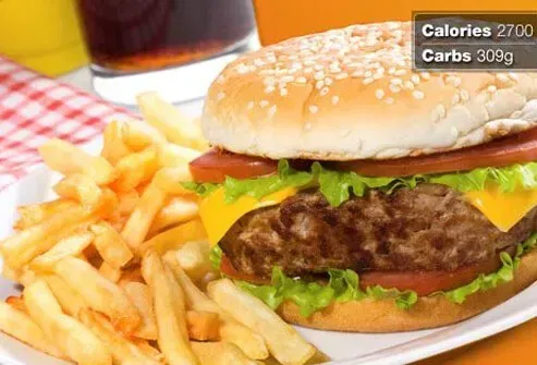 Un cheeseburger de bacon grandes frites et un grand soda ont plus d'une journée de glucides 2700 calories et 44 grammes de graisses saturées. La «hausse» et les bas prix rendent difficile la consommation de petites portions dans les articulations de hamburger.