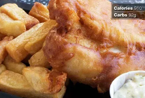Le poisson fait partie d'une alimentation saine et saine à moins qu'elle ne soit frite. L'huile de panure et les calories supplémentaires annulent les avantages pour la santé du poisson lui-même. Méfiez-vous aussi des côtés frits ainsi que de la salade de chou engendrée dans une vinaigrette en mayonnaise sucrée.