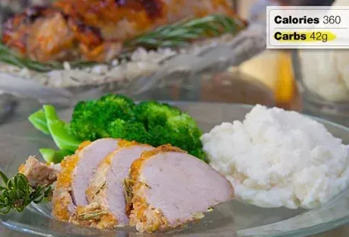Le filet de porc est l'une des coupes de viande les plus maigres et les plus polyvalentes. Ici, il est préparé dans un glaçage à la moutarde Dijon et servi avec du brocoli cuit à la vapeur et des pommes de terre simulées. Le chou-fleur en purée se tient magnifiquement pour les pommes de terre blanches lourdes de glucides. Complétez le repas avec un dîner de blé entier.