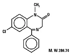 Le diazépam est un dérivé de benzodiazépine désigné chimiquement comme 7-chloro-13-dihydro-1-méthyl-5-phényl-2H-14-Benzodiazépine-2-one. C'est un composé cristallin incolore insoluble dans l'eau avec la structure moléculaire suivante: