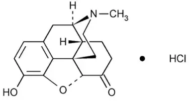 Le nom chimique est 45α-époxy-3-hydroxy-17-méthylmorphinan-6-one. Le poids moléculaire est de 321,80. Sa formule moléculaire est C 17 H 19 NON 3 · HCL et il a la structure chimique suivante: