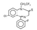 Doral contient du quazepam A Trifluoroethyl benzodiazépine Agent hypnotique ayant le nom chimique 7-chloro-5- (O-fluoro-phényl) -13-dihydro-1- (222-trifluoroéthyl) -2H-14Benzodiazépine-2-Thione et la formule structurelle suivante: