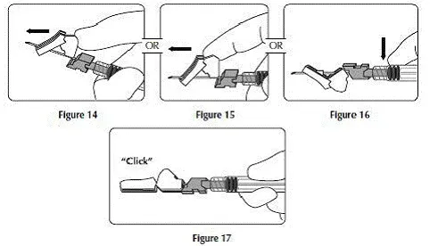 7. Immédiatement après le retrait de l'aiguille, activez le bouclier de sécurité à l'aide d'un doigt / d'un pouce ou d'une surface plane et poussez jusqu'à ce qu'il recouvre complètement la pointe de l'aiguille et se verrouille en place.