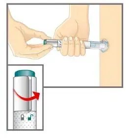 - Laissez le capuchon d'aiguille jusqu'à ce que vous soyez prêt à injecter.
