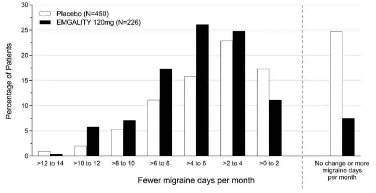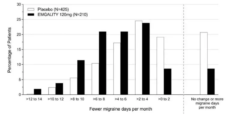 Dans les études cliniques contrôlées par placebo (études 1 2 et 3), 705 patients ont reçu au moins une dose d'émgalité 120 mg une fois par mois et 1451 patients ont reçu un placebo pendant 3 mois ou 6 mois de traitement en double aveugle [voir Études cliniques ]. Parmi les patients traités à l'emgalité, environ 85% étaient des femmes 77% étaient blanches et l'âge moyen était de 41 ans à l'entrée de l'étude.