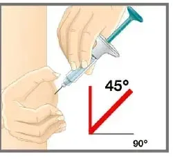 - Pincez doucement et maintenez un pli de peau où vous injecterez.