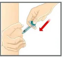 - Poussez lentement sur le tampon du pouce pour pousser le piston jusqu'à ce que tous les médicaments soient injectés.