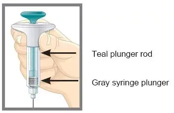- Toi should see the teal plunger rod show through the syringe body when the injection is complete as shown.