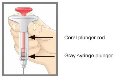 - Toi should see the coral plunger rod show through the syringe body when the injection is complete as shown.