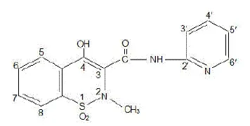 La capsule Feldene (Piroxicam) est un médicament anti-inflammatoire non stéroïdal disponible en maron et bleu N -2-pyridinyl-2 H -12-benzothiazine-3-carboxamide 11-dioxyde. Le poids moléculaire est de 331,35. Sa formule moléculaire est C 15 H 13 N 3 O 4 S et il a la structure chimique suivante.