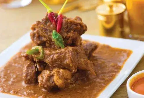 C'est rouge. C'est carbonisé. C'est l'un des plats indiens les plus familiers. Le poulet Tandoori tire son nom de Tandoor un récipient en argile épais ou en pierre dans lequel il est cuit. Vous pouvez également commander du poisson tandoori et de l'agneau qui sont saisis à des températures élevées à partir de charbon de bois ou d'une flamme de gaz. Tout comme les grillades, toute la saveur provient de la viande et de la marinade et non des huiles ou d'autres graisses inutiles.