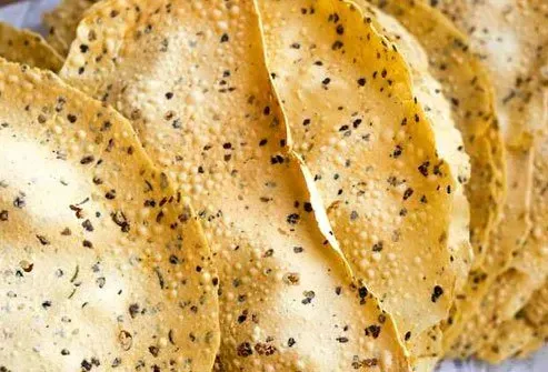 Dans le nord de l'Inde, ce pain de farine de lentille est rôti à la flamme. Mais aux États-Unis et à peu près partout ailleurs, c'est frit. Résistez à l'envie de les dévorer avant l'arrivée de votre repas. Ou se frayer un chemin à travers un couple peut-être avec un petit chutney à la menthe sur le dessus.