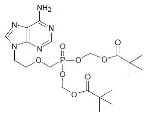 Le nom chimique de l'adéfovir dipivoxil est 9- [2 - [[bis [(pivaloyloxy) méthoxy] -phosphinyl] méthoxy] éthyl] adénine. Il a une formule moléculaire de c 20 H 32 N 5 O 8 P un poids moléculaire de 501,48 et la formule structurelle suivante: