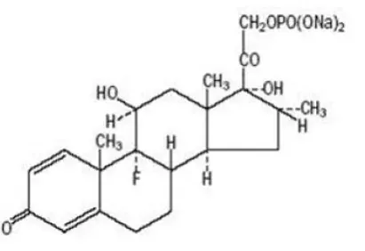Dexaméthasone sodium phosphate c 22 H 28 FNA 2 O 8 P a un poids moléculaire de 516,41 et chimiquement est la prégnal-4-ENE-3 20-DIONE 9-FLUORO-11 17-dihydroxy-16-méthyl-21 (phosphonooxy) - le sel disodique (11β 16α).