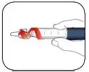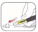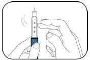 Tenez votre stylo avec l'aiguille qui pointe vers le haut. Appuyez doucement sur le support de cartouche pour récupérer les bulles d'air en haut.