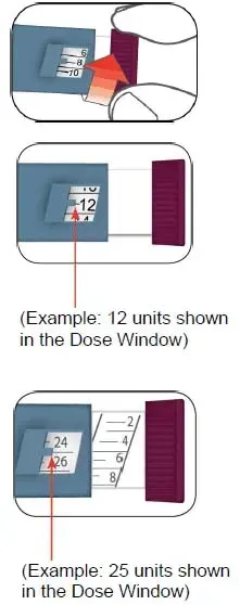 Ce stylo a été conçu pour livrer la dose indiquée dans la fenêtre de dose. Composez votre dose habituelle comme indiqué par votre fournisseur de soins de santé.