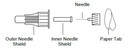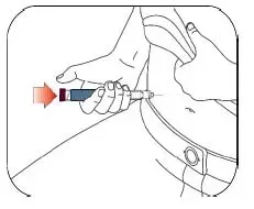 - Vous devez utiliser une nouvelle aiguille pour chaque injection et répéter l'étape d'amorçage.