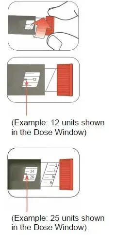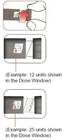 - Pour amorcer votre stylo transforme le bouton de dose vers Sélectionnez 2 unités.