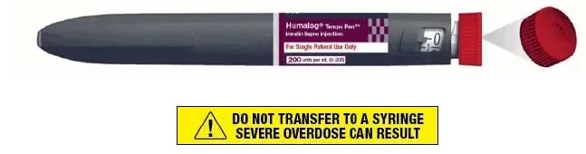 Ne pas transfer insulin from your Pen to a syringe. Syringes will not measure 200 unités / ml insulin courectly. A severe overdose can result causing very low blood sugar which may put your life in danger.