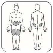 - Faites pivoter le site d'injection dans la même région d'une injection à la suivante (haut du bras ou des fesses de la cuisse de la paroi abdominale) pour réduire le risque de lipodystrophie et d'amylose cutanée localisée. Ne pas injecter dans des zones de lipodystrophie ou une amylose cutanée localisée [voir Avertissements et précautions et Effets indésirables ].