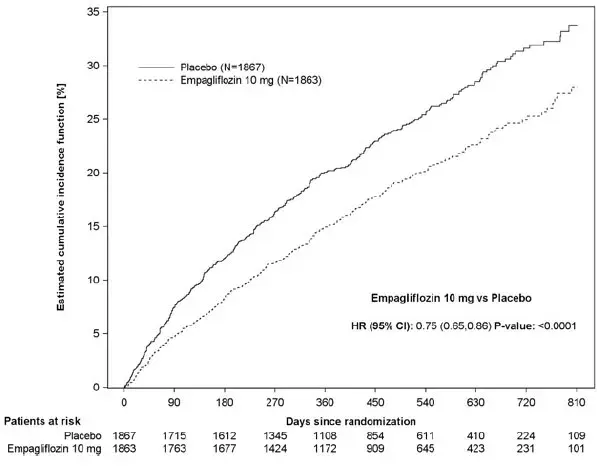 Jardiance (Empagliflozin Tablet Film enduit) est un inhibiteur de co-transporteur 2 (SGLT2) de sodium-glucose indiqué pour réduire le risque de mort cardiovasculaire et d'hospitalisation pour insuffisance cardiaque chez les adultes souffrant d'insuffisance cardiaque; pour réduire le risque de baisse soutenue de la mort cardiovasculaire et de l'hospitalisation cardiovasculaire de l'EGFR chez les adultes atteints d'une maladie rénale chronique au risque de progression; pour réduire le risque de décès cardiovasculaire chez les adultes atteints de diabète sucré de type 2 et de maladie cardiovasculaire établie; et en complément du régime alimentaire et de l'exercice pour améliorer le contrôle glycémique chez les adultes et les patients pédiatriques âgés de 10 ans et plus atteints de diabète sucré de type 2.