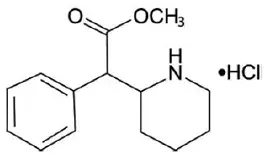 Le chlorhydrate de méthylphénidate est une poudre cristalline sans odor blanche. Ses solutions aqueuses sont acides. Il est librement soluble dans l'eau et dans le méthanol soluble dans l'alcool et légèrement soluble dans le chloroforme et dans l'acétone. Le nom chimique de la chlorhydrate de méthylphénidate est le chlorhydrate DL (racémique) méthyl α-phényl-2-pipéridineacétate. Sa formule moléculaire est C 14 H 19 NON 2 • Le HCL et le poids moléculaire sont de 269,77. Sa formule structurelle est