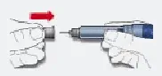 6B GRUP et presser la partie la plus large du capuchon d'aiguille extérieur. Tournez votre stylo plusieurs fois avec votre autre main pour retirer l'aiguille.
