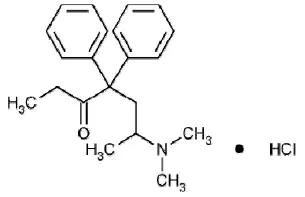 Le chlorhydrate de méthadone est décrit chimiquement comme le chlorhydrate de 6- (diméthylamino) -44-diphényl-3-hépatanone. Le chlorhydrate de méthadone est un matériau cristallin blanc qui est soluble dans l'eau. Le chlorhydrate de méthadone a un point de fusion de 235 ° C et un PKA de 8,25 dans l'eau à 20 ° C. Son coefficient de partition octanol / eau à pH 7,4 est de 117. Une solution (1: 100) dans l'eau a un pH comprise entre 4,5 et 6,5. Il a la formule structurelle suivante: