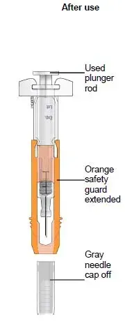 Important: Ne pas Faites glisser le garde de sécurité orange sur l'aiguille avant de donner l'injection. Cela activera ou verrouillera le garde de sécurité orange.